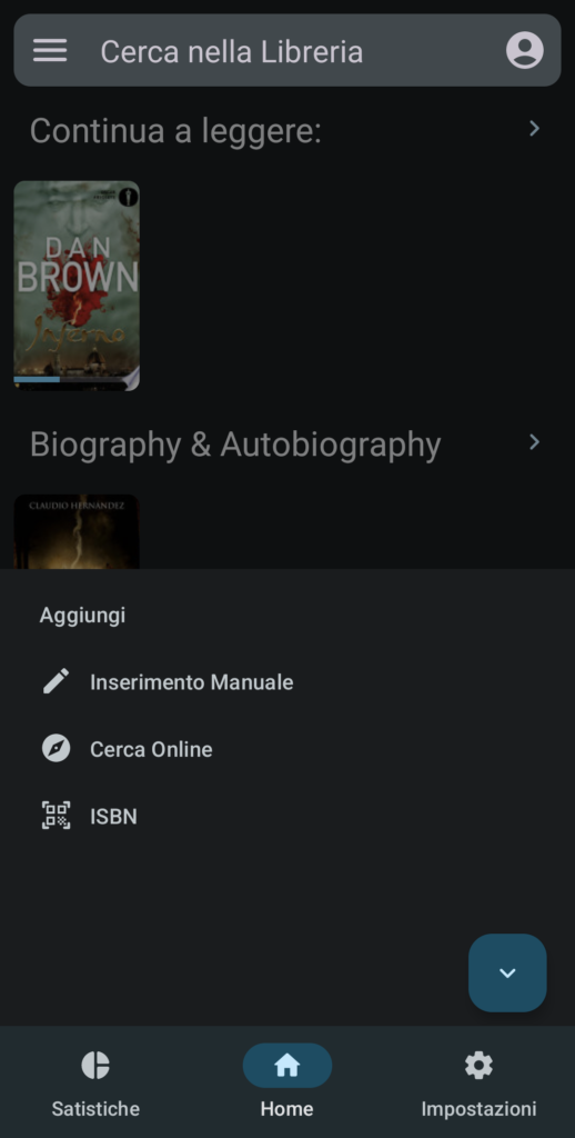 Se preferisci, puoi anche utilizzare la funzione di scansione del codice ISBN del libro. Basta inquadrare il codice a barre con la fotocamera del tuo dispositivo e l’app farà il resto, aggiungendo il libro alla tua libreria in modo rapido e semplice.