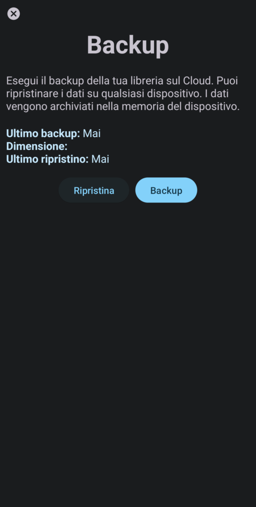 Se vuoi avere accesso a funzionalità extra come il backup della tua libreria e la condivisione dei libri con altri utenti, potrai creare un account. In questo modo, potrai salvare i tuoi dati in modo sicuro e condividere i tuoi libri con gli amici o la famiglia.